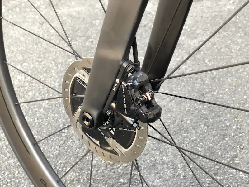 Une question de logique. Effectivement, le disque coûte quelques watts en termes de trainée aéro par rapport à des étriers de freins classiques. Mais celle-ci est largement compensée par l’intégration totale des durites de freins dans le poste de pilotage, la douille de direction et la fourche, ou à l’intérieur des tubes du cadre pour le frein arrière.