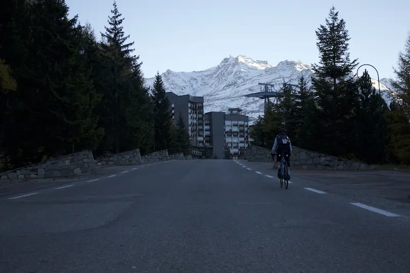 Nous traversons les Menuires (1850 m), une station qui me rappelle mes débuts en cyclo lors de la Bourgui. Encore une petite descente (pour vous faire du bien ou pour casser le rythme, c’est selon) et c’est parti pour cette fois les 7 derniers kilomètres. Des pourcentages modestes à 6 / 7 %. On ne reste pas planté même si on est cuit. Mais l’addition est salée à la fin car c’est long. Un petit tour dans la station et la délivrance est là au terme de 132 km et 4450 m, vérifiés pour celles et ceux qui pensaient le dénivelé surestimé. »