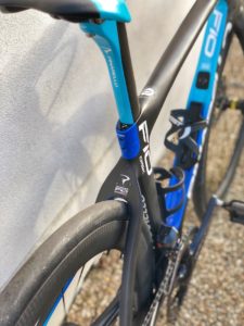 Le verdict de la balance est sans appel. Poids de la version Disk (complet) : 7,850 kg. Poids de la version non disque : 7 kg tout rond. Mais il convient de préciser que certains éléments ne sont pas tout à fait du même niveau de gamme. Les roues Cosmic Pro Carbon Disc sont d’abord 150 g plus lourdes que les Cosmic Pro Carbon SL. Ensuite, il y a 130 g de différence sur le poste de pilotage, 20 g sur les pédales et 25 g sur les porte-bidons.