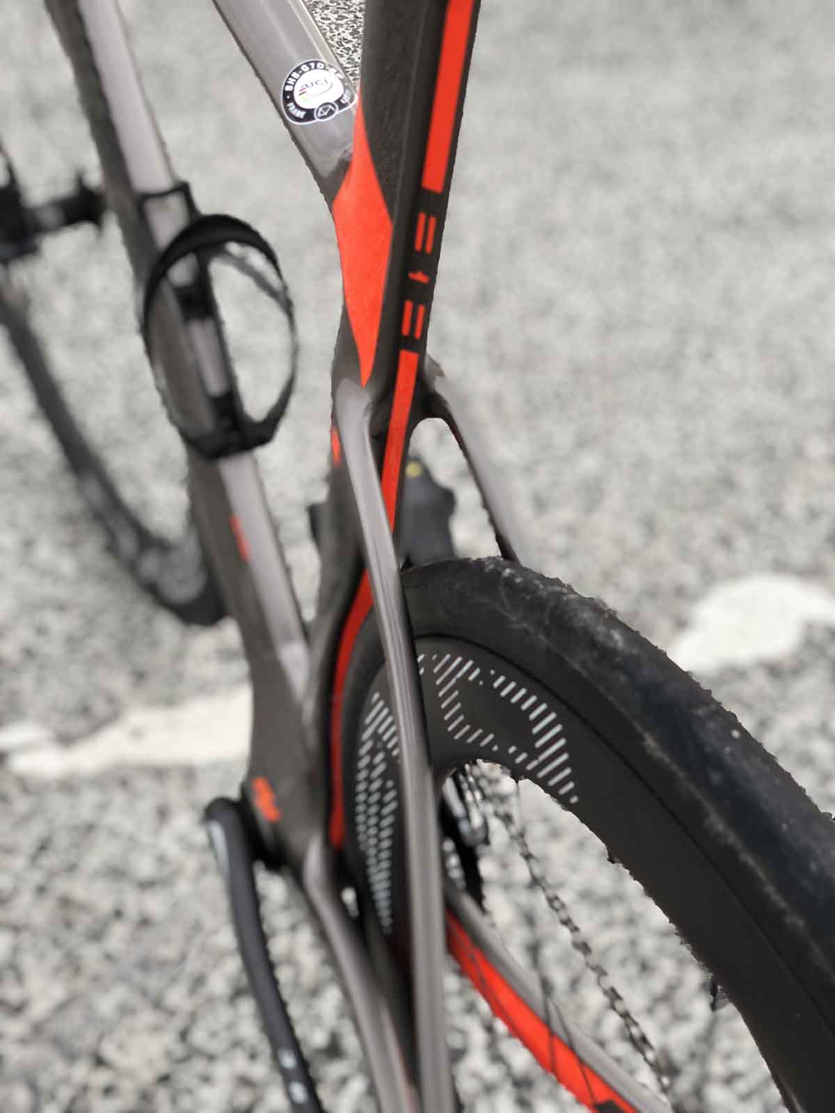 Aérodynamisme, rigidité, rendement, relances : pas loin de 1 000 kilomètres permettent de vérifier que ce BH G7 Disc 5.5 est un formidable rouleur ! On le conseille surtout à un compétiteur, mais celui qui aime faire ses sorties au train, rouler soutenu ou non, trouvera ici un allié de choix pour l’accompagner dans sa progression. Sachez que son style musclé en a impressionné plus d’un avant même de le voir à l’œuvre… De quoi marquer les esprits avant même le départ d’une épreuve ! La machine donne pleine satisfaction quand on recherche la performance, la vitesse… Et le freinage à disque se montre ici au niveau, précis, homogène et surtout d’une fiabilité jamais constaté jusqu’alors. Le BH G7 Disc 5.5 est proposé dans cet élégant coloris gris/orange/noir, qui ne plaira peut-être pas à tout le monde mais qui a le mérite de se distinguer… Les sceptiques le trouveront aussi en blanc/gris/noir, ou à customiser selon ses goûts via le configurateur « My BH Unique« .