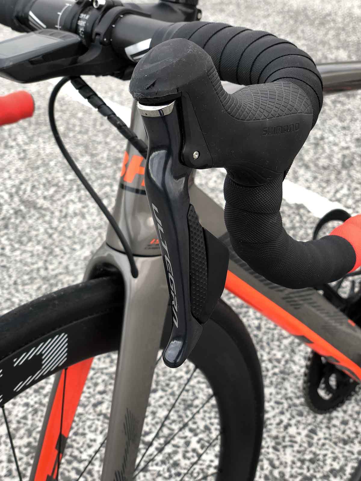 La fiabilité du freinage Ultegra hydraulique est l’une des très bonnes surprises du test de ce G7 Disc 5.5. Preuve qu’un cadre pensé au départ uniquement pour cette technologie peut tenir la route sans flancher. La finesse et le dessin des manettes accueillant le système est bluffant ! Mais on a surtout apprécié la fiabilité des disques, jusqu’à souligner (chose assez rare!) qu’ils n’ont occasionné aucun bruit parasite au cours des près de 1 000 kilomètres sur lesquels on a roulé avec ce BH.