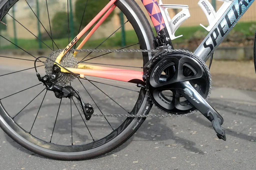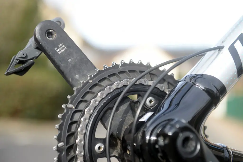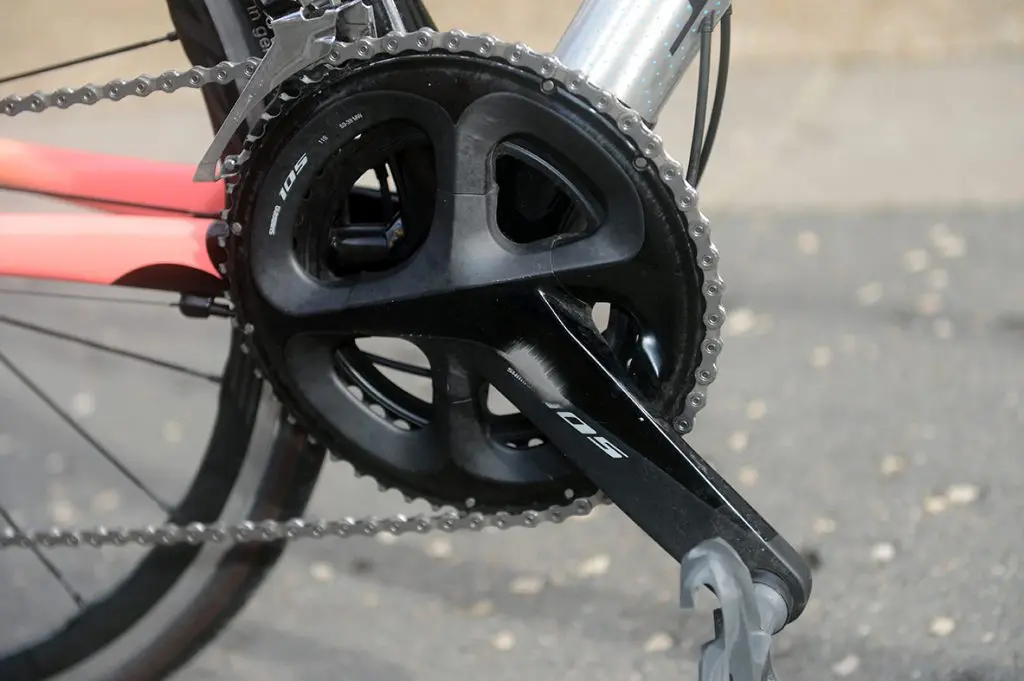 Reste donc le poids, toujours une question centrale au moment d’équiper un vélo, mais de ce côté-là, nous pourrions vous conseiller d’éliminer simplement le pédalier et de gagner ainsi « facilement » 150 g (moyennant quelques euros supplémentaires). Mais est-ce le plus important pour le groupe 105 ? De plus, il est toujours possible d’investir dans un capteur de puissance par la suite. Ce qui a été notre cas et nous a permis de gagner quelques dizaines de grammes, sans rien occulter des performances du vélo (et du coureur !).