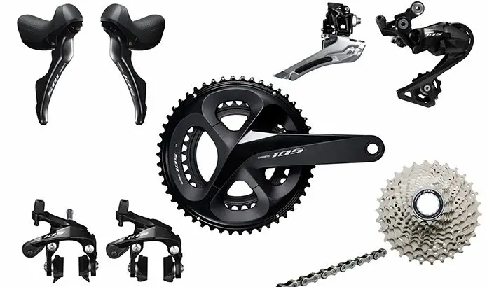 Comme à l’accoutumée, les technologies développées sur les groupes haut de gamme (Dura-Ace et Ultegra), sont transposées sur le 105. Restent les matériaux employés pour certaines pièces, moins nobles (pas de titane par exemple), ce qui occasionne une légère hausse du poids. Le but est bien évidemment de faire baisser la facture, sans compromettre les performances.