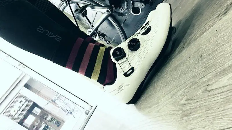 J’aborde ma quatrième année de pratique du vélo, et il s’agit là de ma quatrième paire de chaussures. Heureusement que je ne fais pas comme pour les chaussures de ville, sinon je ne saurais plus où les mettre ! La règle en vélo, c’est une seule paire dans laquelle on est bien sinon on perd ses repères. Ma première paire de Shimano, c’était le modèle triathlon à scratch… un peu chausson sur les bords, et pas franchement sexy, je dois le reconnaitre (en 2016).