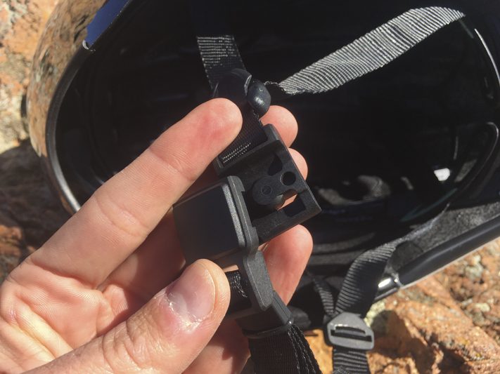 Là encore, une seule main suffit pour mettre l’écran en place sur ses quatre encoches magnétiques, deux sur les extrémités du front et deux sur les côtés. À noter que si vous souhaitez en course ôter l’écran quelques minutes, dans une montée de col par exemple, vous pouvez le décrocher d’une main et le placer dans le sens inverse (nez en haut) sur la face avant du casque. Il restera solidement accroché magnétiquement, sans risque de tomber.