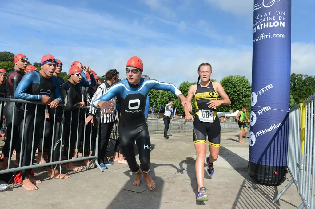 Exemple pour une épreuve relais : chaque équipe est composée de 4 relayeurs (mixte la plupart du temps). Le premier départ s’effectue en mass start (départ groupé) avec le relayeur numéro 1 de chaque équipe. Il effectue les trois disciplines (natation, vélo et course à pied). Puis donne le relais à son coéquipier, qui part pour le même enchaînement. Le premier athlète (relayeur numéro 4), qui franchit la ligne, fait gagner son équipe.