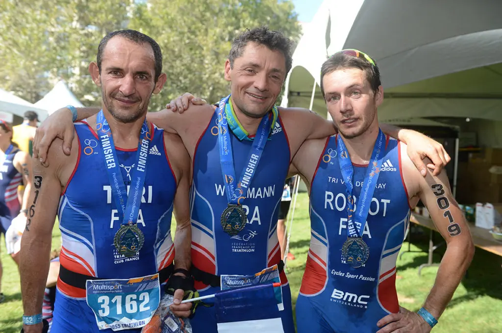 Le cas d’un championnat national longue distance : pour tous les championnats nationaux sous l’égide de la FFTri, les classements par catégories donnent droit à un titre de champion de France. Depuis 2016, les athlètes élites sont intégrés dans les groupes d’âges. Il existe donc un titre sur le scratch (homme et femme), puis les titres sont attribués dans les différents groupes d’âges.