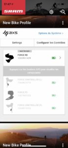 Cependant, le système AXS bénéficie également d’une application à télécharger sur smartphone, mais bien plus simple à utiliser que la version e-tube de Shimano. D’abord l’appli se télécharge en quelques secondes. Puis il suffit de « réveiller » l’un des composants pour que l’appli reconnaisse le système utilisé, avec les numéros de série. Elle informe ensuite par exemple de l’état de charge des batteries des dérailleurs, ou de la pile utilisée dans les manettes.