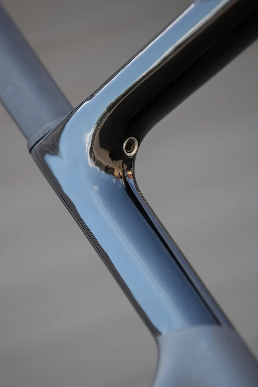 Le collier de serrage de la tige de selle disparaît sur cette nouvelle version. Le serrage est désormais placé dans le creux sous le tube supérieur et le tube de selle. C’est discret, facile d’accès et esthétiquement très soigné.