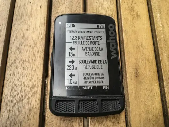 Wahoo a travaillé sur la navigation en offrant de multiples possibilités pour rejoindre un point déterminé, pour retrouver son chemin ou pour rentrer à la maison. Même si, comme on vient de le voir, ces options ne sont pas totalement optimisées puisqu’elles vous contraignent et ne vous proposent pas d’alternatives. Malheureusement, l’autre point noir de ce nouveau Roam, c’est la création d’itinéraire qui est tout simplement impossible ou presque. Wahoo s’est concentré sur la navigation pure et simple, avec des instructions et informations claires et efficaces, mais la marque a complètement délaissé cet aspect aujourd’hui très important. Impossible en effet de créer un parcours point par point sur la carte via l’application. Impossible de demander au Roam de vous proposer un parcours de 3h et 90 km en partant vers l’Ouest. Il nous a été expliqué que le Roam n’a pas vocation à concurrencer un Garmin 1030 ou un Sigma Rox 12 par exemple. Son placement en termes de tarif limite son offre. Pour créer votre parcours, vous devez donc passer une application externe avant de l’importer dans le Roam. Quelle frustration ! Pour nous, c’est une réelle déception pour une option qui, au tarif de 349,99 €, devrait tout de même être proposée, même dans une configuration simple comme du point par point, via l’application Elemnt Companion. Dans les rubriques : Entraînement => Itinéraires => Aller à… il est possible de poser des points de passages, mais après quelques points, le Roam va optimiser la route et passer outre les points précédemment notés. Un casse-tête.
