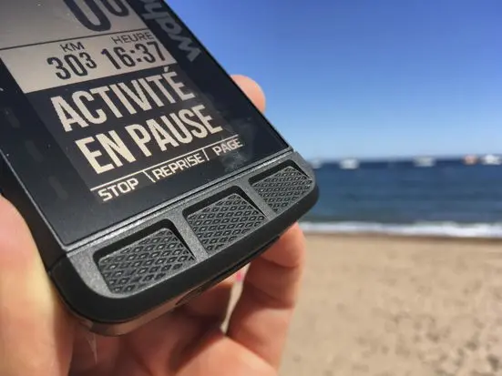 Selon Wahoo, l’autonomie du Roam annonce 17 heures, soit autant que l’Elemnt et 2h de plus que le Bolt. Cette estimation est pour nous fidèle à la réalité, nous avons poussé le Roam lors de la première charge totale à 16h15 et lors de la 2e charge 16h, en lui demandant plusieurs recherches de parcours au milieu de chaque sortie pour le faire travailler. Dans une utilisation simple, sans changements ou recherches de nouveaux itinéraires, les 17 heures auraient été largement dépassées. Cela dit, l’indication de charge ne se voit pas sur l’écran principal du Wahoo lorsque celui-ci est en marche. Il faut se rendre dans le menu pour savoir quel pourcentage de charge est encore disponible ou encore dans l’application. De plus, le Roam ne prévient du manque de charge que lorsqu’il est presque prêt à rendre l’âme, ce qui nous a valu à deux reprises de nous retrouver sans navigation et sans données. Rien de grave, bien entendu, mais intégrer la charge de l’appareil sur l’écran de données principales aurait été une bonne idée.