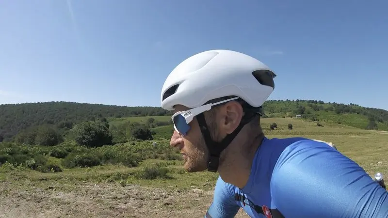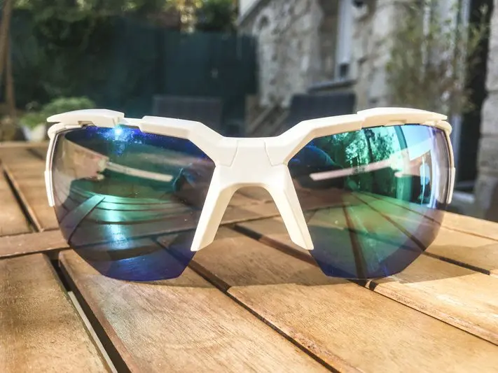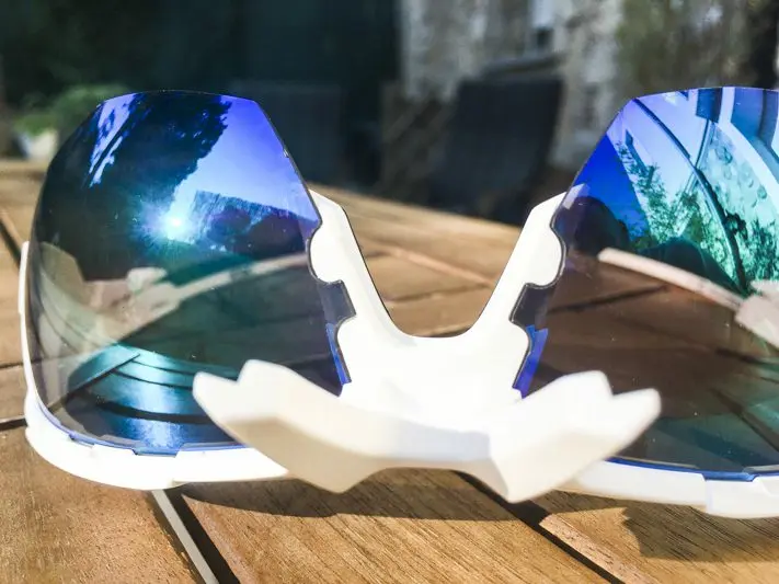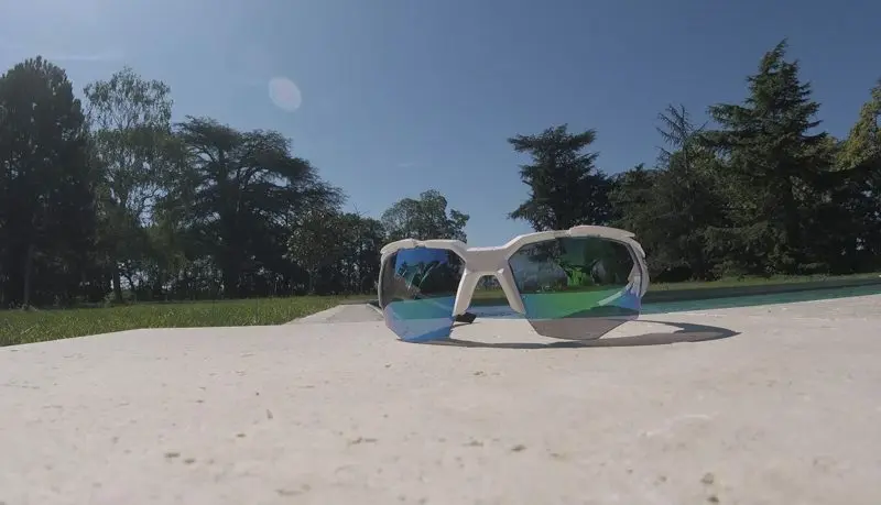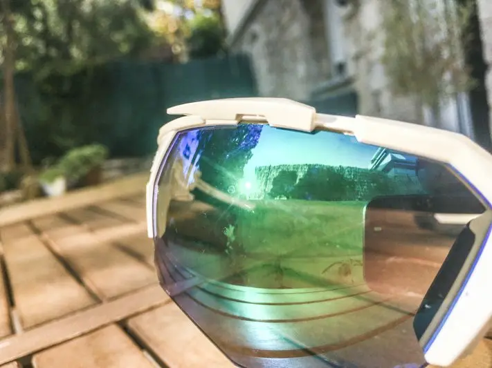 La courbure des verres permet un très large champ de vision et la structure ouverte ne gêne pas les angles morts lorsque l’on regarde en arrière par dessus l’épaule pour changer de route. À noter également une excellente protection contre les insectes ou contre le vent : aucun flux d’air ne vient se perdre dans les yeux même avec les mains en bas du cintre dans une position plus aérodynamique. Enfin, malgré une utilisation sans précaution, quelques voyages et chutes, les verres ne présentent aucune rayure ou accroc.