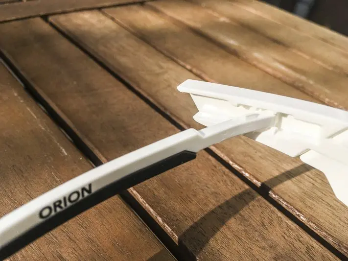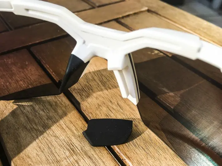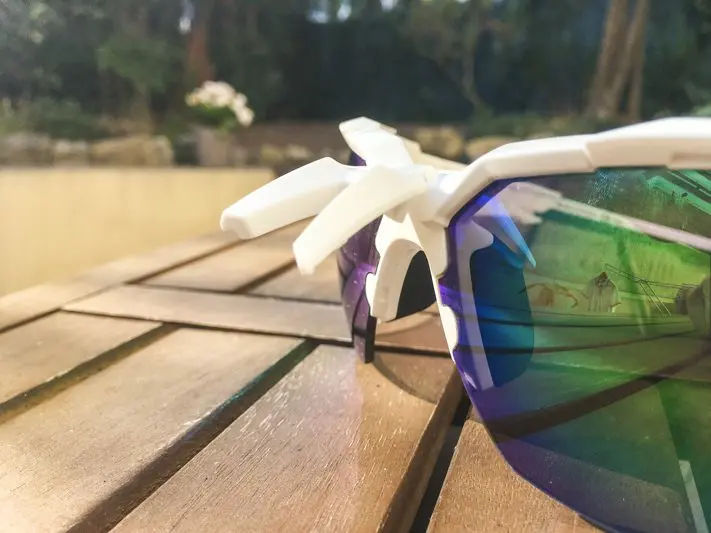 L’ajustement trouvé, la structure reste parfaitement en place grâce aux inserts caoutchouc sur les branches et aux pads nasaux. Ceux-ci présentent deux inconvénients : ils ne sont pas réglables et n’ont pas de système de retenue. Ils s’enfilent uniquement via une tige de polycarbonate. Autrement dit, il est possible de perdre un pad lors d’un voyage ou dans une chute. Néanmoins, ce caoutchouc apporte une grande stabilité, la structure n’a jamais glissé, même avec une grosse transpiration durant les chaleurs de l’été. Surtout, les Orion se font vite oublier avec seulement 31 g sur la balance.