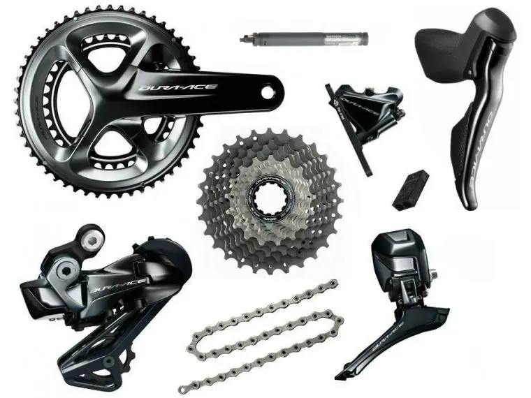 Groupe Poids (g) Prix (€) Shimano Dura-Ace Di2 11 2162 3293 Shimano Dura-Ace 11 2182 1985 Sram Red eTap 12 AXS 2187 3518 Campagnolo Super Record 12 2252 2901 Campagnolo Super Record EPS 12 2377 4326 Campagnolo Record 12 2398 1960 FSA K-Force We 2437 2878 Rotor 1×13 2446 2599 Shimano Ultegra Di2 11 2469 1722 Shimano Dura-Ace Di2 Disc 11 2498 3783 Campagnolo Chorus 12 2498 1275 Sram Red eTap 12 AXS HRD 2503 3618 Shimano Dura-Ace Disc 11 2503 2515 Campagnolo Super Record 12 Disc 2529 3212 Campagnolo Potenza 11 2529 917 Shimano Ultegra 11 2533 1041 Sram Force eTap 12 AXS 2534 2408 Campagnolo Super Record EPS 12 Disc 2634 4667 Campagnolo Record 12 Disc Brake 2657 2409 Sram Force 1 HRD (1×11) 2669 1311 Campagnolo Centaur 11 2679 658 Shimano Ultegra Di2 Disc 11 2718 2219 Campagnolo Chorus 12 Disc Brake 2771 1828 Shimano Ultegra Disc 11 2779 1531 Sram Force eTap 12 AXS HRD 2793 2548 Campagnolo Potenza 11 Disc Brake 2807 1558 Shimano 105 11 2860 666 Sram Rival 1 HRD (1×11) 2932 1039 Sram Apex 1 HRD (1×11) 3053 929 Shimano 105 Disc 11 3159 1063 Shimano Tiagra 10 3245 579 Shimano Tiagra Disc 10 3346 923