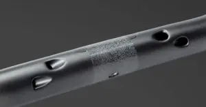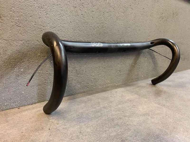 Le PRO Vibe Superlight n’est évidemment pas le premier cintre léger du marché, mais il est assurément l’un de ceux qui proposent le meilleur rapport entre poids léger et rigidité. Car jusqu’à présent, l’un des principaux griefs que l’on pouvait faire à ce type de produit, c’était une certaine flexibilité lors des fortes sollicitations ou lors des efforts violents, quand le coureur empoigne fermement le cintre surtout dans sa partie basse. D’autre part, un cintre léger était rarement percé pour recevoir les gaines de freins ou les câbles de dérailleurs, car il fallait pouvoir concilier des passages internes avec un minimum de résistance.