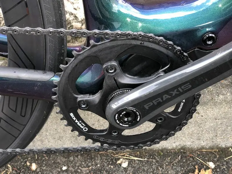 Autre avantage du système propriétaire : le pédalier dispose d’un capteur de puissance et d’un capteur de cadence internes, compatibles avec n’importe quel compteur en ANT+. La puissance et la cadence sont donc affichées comme avec n’importe quel pédalier qui mesure la puissance. Évidemment, on parle de la puissance cumulée du moteur et de vos jambes. Cette caractéristique permet là aussi de gérer l’autonomie de la batterie en apprenant à maitriser le couple et la puissance additionnels fournis par le Turbo Creo SL.
