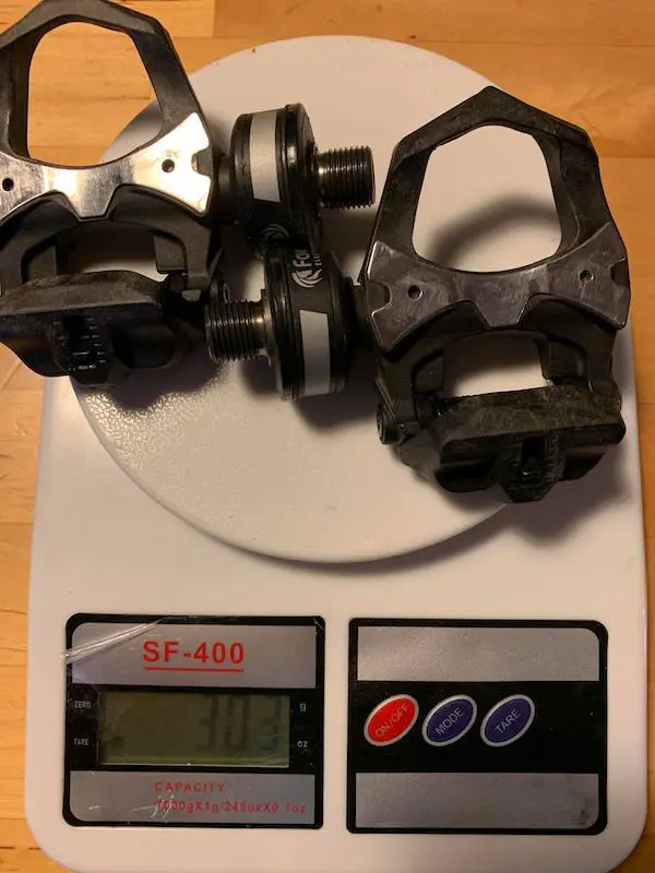 Commençons par une brève présentation du produit : une paire de pédales sur la base du modèle XPedo, livrée avec des cales à 6° de liberté angulaire (0°possible), compatibles avec les cales Look Kéo (uniquement sinon la garantie ne fonctionne pas). Avec 303 g sur la balance, on ajoute seulement 74 g à une paire de pédales Shimano R9100, ou un peu plus de 80 g à une paire de Look haut de gamme. Donc pas de quoi se priver de la puissance, car ce surpoids est négligeable. En réalité, nous arrivons exactement au même surpoids que pour un pédalier capteur de puissance Shimano RC-P9100-P.