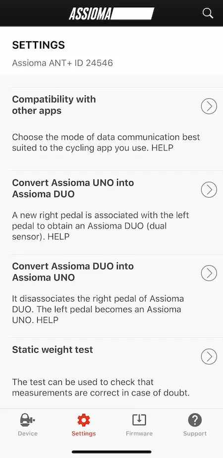 – De convertir le modele Uno en Duo, ou l’inverse en cas de départ SAV par exemple. Le capteur Assioma Uno se compose d’une seule pédale qui mesure la puissance d’un seul côté, les données sont ensuite estimées en multipliant par deux la valeur trouvée.
