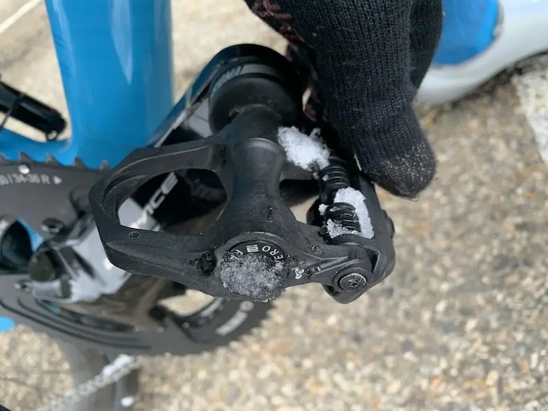Attention également avec certains couvre-chaussures qui peuvent venir frotter sur la partie proéminente des pédales. Il faut bien veiller à ce qu’aucune force ne soit appliquée, ce qui pourrait endommager le produit. Avec des couvre-chaussures en néoprène, j’ai appliqué du ruban d’électricien pour qu’il n’y ai aucune trace de frottements. C’est surtout par précaution.