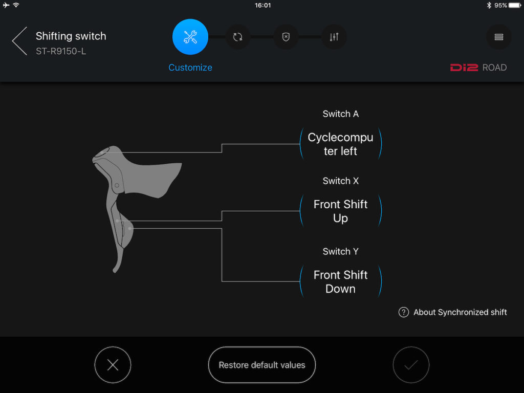 Peu d’utilisateurs en ont conscience, mais les possibilités offertes par les transmissions électroniques sont très étendues, dans le but d’offrir plus de confort et plus de personnalisation. C’est le cas chez Sram avec les nouveaux groupes Force eTap AXS et Red eTap AXS (également au catalogue d’Orbea avec d’autres versions de l’Orca OMX), et bien sûr chez Shimano sur les Dura-Ace et Ultegra Di2.