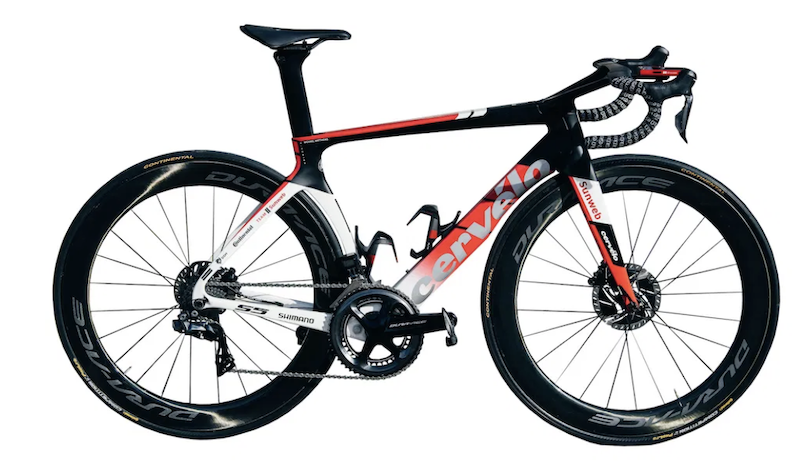 Chez Sunweb, les coureurs auront le choix entre le modèle aérodynamique aux formes particulières S5 et le R5 pour grimper, dans sa version à patins. Équipement tout Shimano, du groupe aux roues en passant par les pédales et le capteur de puissance pour l’équipe de Michael Matthews.