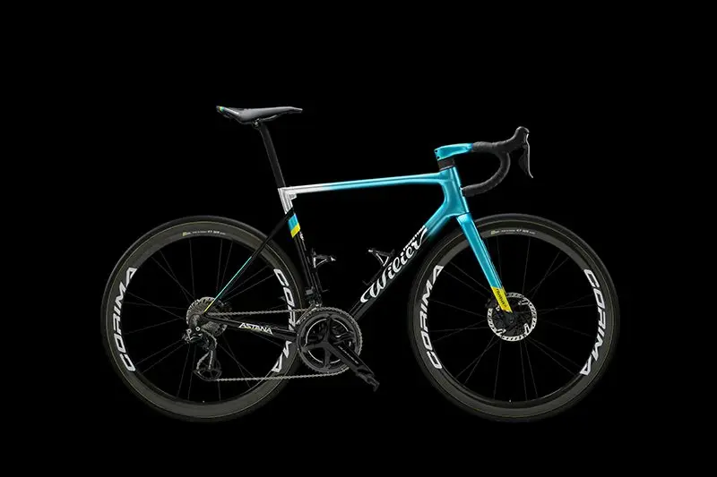 Astana change de fournisseur cycle en 2020 et accède à de magnifiques Wilier aux couleurs personnalisées. Le Zero SLR, uniquement disponible à disque, devrait être le vélo le plus utilisé par l’équipe cette saison, grâce à son poids léger, son intégration parfaite, et sa polyvalence.