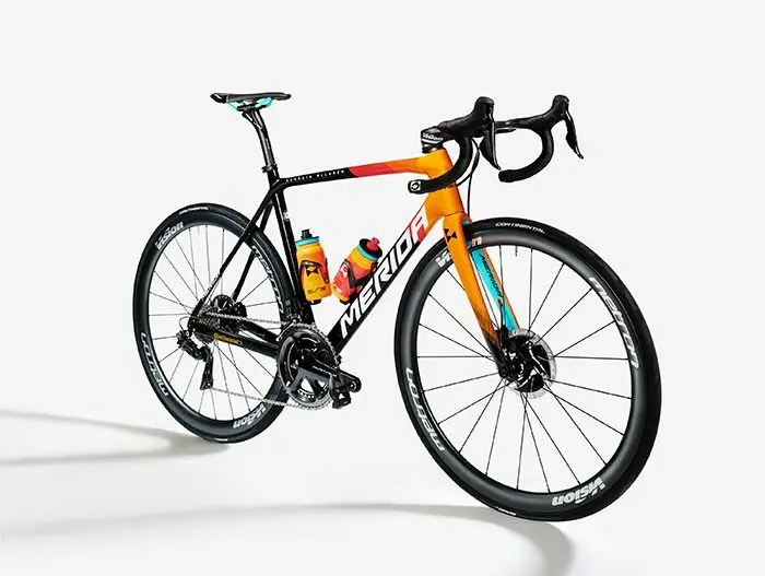 Chez Bahrain – McLaren, on ne passe pas sur des Formule Un mais on reste bien sur des vélos Merida. Les coureurs auront le choix selon le type de parcours entre le Scultura et le Reacto (modèle aéro), tous les deux à disque. Équipement Shimano et roues Vision complètent l’ensemble aux couleurs fort séduisantes.
