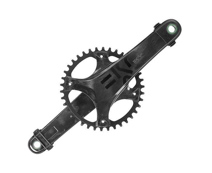 Le pédalier Ekar est conçu sur la base d’un système mono plateau 1x. Il est présenté comme léger, efficace et parfait pour la conduite sur les chemins. Les manivelles en carbone UD solides et légères s’articulent autour d’un axe Ultra-Torque en deux parties, en acier 630 à haute résistance à la corrosion.