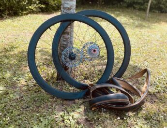 Au niveau des roues, et bien qu’équipé normalement par Shimano, le Team Ineos a choisi une roue avant Princeton Carbonworks, une marque américaine qui propose cette jante avec des « vagues », sans doute étudiée en soufflerie et qui doit offrir une bonne stabilité avec le vent de travers, ainsi qu’un croisement de rayons atypique. Il s’agit d’une roue à pneu, équipée d’un continental GP TT.