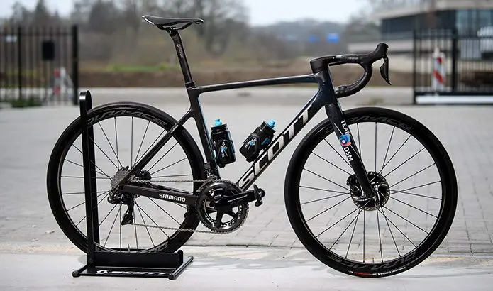 Le Team DSM (ex Sunweb) passe de Cervélo à Scott, et récupère les Addict RC pour les parcours très vallonnés, les Foil pour les parcours roulants, et les Plasma pour les CLM. Mais l’équipe reste fidèle à Shimano, avec groupes, roues et pédales, et avec un freinage à disque.
