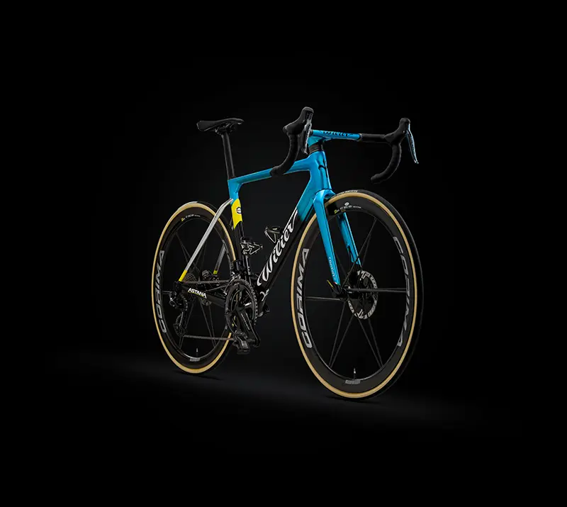 | Cadres et fourches : Wilier Filante SLR, Zero SLR, Turbine Roues : Corima Groupes : Shimano Dura-Ace Di2 Disc Pneumatiques : Vittoria Selles : Prologo Postes de pilotage : Wilier Pédales : Look Keo Blade Carbon Ti Compteurs : Garmin Capteurs de puissance : Shimano Porte-bidons : Tacx Contact : astanaproteam.kz, wilier.com |