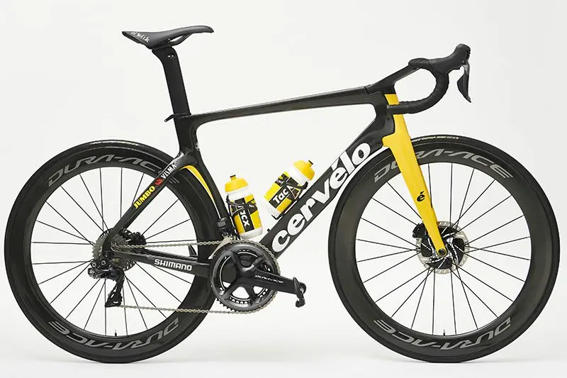 | Cadres et fourches : Cervélo S5, R5, Caledonia 5 et P5 Roues : Shimano Groupes : Shimano Dura-Ace Di2 Disc Pneumatiques : Vittoria Selles : Fizik Postes de pilotage : FSA/Cervélo Pédales : Shimano Dura-Ace Compteurs : Garmin Capteurs de puissance : Shimano Porte-bidons : Tacx Contact : teamjumbovisma.nl, cervelo.com |
