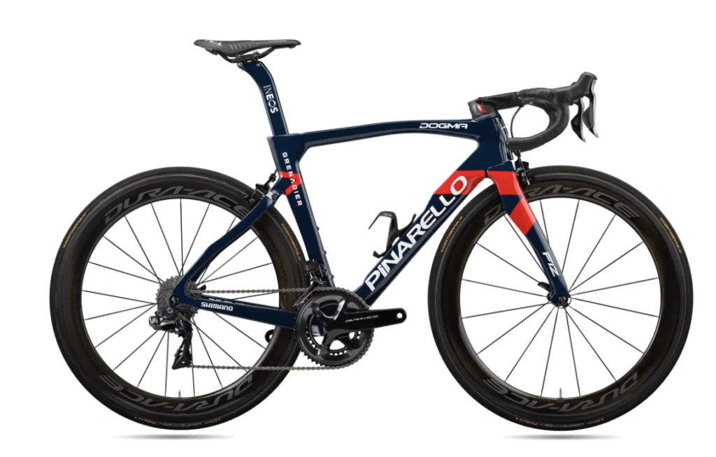 | Cadres et fourches : Pinarello Dogma F12 et Dogma F12 X-Light, Bolide Roues : Shimano Groupes : Shimano Dura-Ace Di2 Pneumatiques : Continental Selles : Fizik Postes de pilotage : Most Pédales : Shimano Dura-Ace Compteurs : Garmin Capteurs de puissance : Shimano Porte-bidons : Elite Contact : ineosgrenadiers.com, pinarello.com |