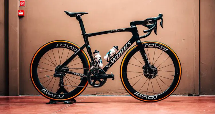 Comme sur la seconde partie de l’année 2020, Deceuninck-Quick Step roulera essentiellement sur le Tarmac S-Works SL7, un vélo à la fois léger, rigide et aérodynamique, monté avec des roues Roval à pneu, en tubeless ou à boyau selon les circonstances. Notons la version spéciale dédiée à Julian Alaphilippe, pour correspondre avec son maillot de champion du monde. Le Shiv TT Disc devrait être une des armes favorites du phénomène Remco Evenepoel.