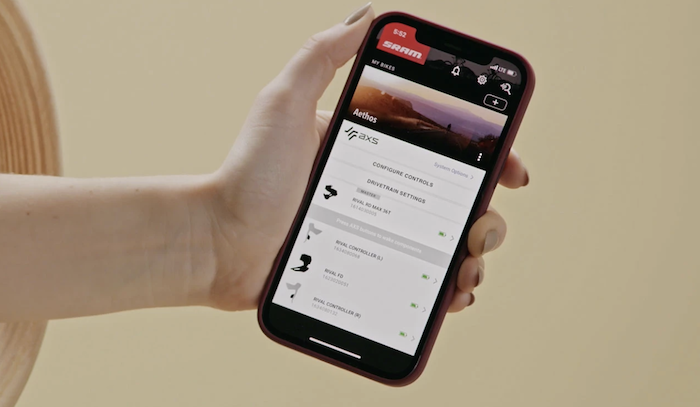 Le groupe Sram Rival eTap bénéficie également de la connectivité AXS vers une application dédiée pour smartphone, avec la possibilité de personnaliser le fonctionnement.