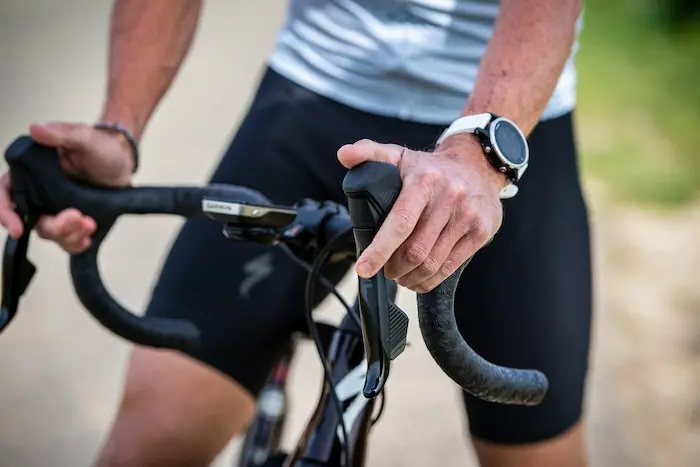 Les changements de vitesse du Rival eTap AXS s’effectuent de la même manière que les deux autres groupes, avec une palette derrière le levier de frein droit pour descendre les pignons sur la cassette, et une palette derrière le levier gauche pour les monter. Une action simultanée sur les deux palettes permet de changer de plateau. La technologie employée sur le Rival est identique à celle qui est utilisée pour les Red et Force, avec une communication sans fil entre les leviers et les dérailleurs, eux-mêmes alimentés par des petites batteries interchangeables et dont l’autonomie tourne autour de 1000 km. Deux petites piles plates CR2032 alimentent quant à elles les poignées, et promettent une autonomie jusqu’à deux ans.
