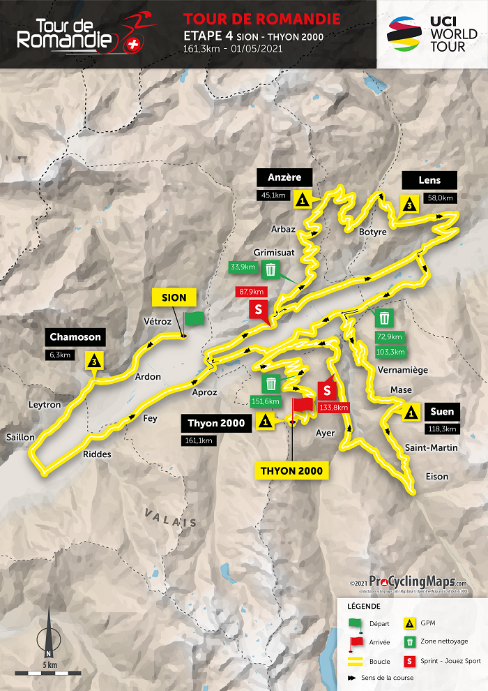 L’étape reine du 74ème Tour de Romandie aura lieu ce samedi 1er mai entre Sion et Thyon 2000.