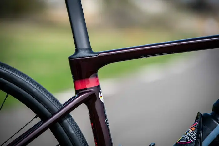 Élaboré avec la performance en ligne de mire, le cadre du Roubaix est selon Specialized plus aérodynamique qu’un Tarmac SL6, avec des formes de tubes validées dans le Wind Tunnel de la marque en Californie. Pour optimiser le poids, la rigidité et le comportement d’ensemble du cadre, chaque taille est conçue indépendamment des autres au niveau de la section des tubes, de leur épaisseur et des différentes couches de carbone appliquées, selon le concept Rider-First Engineered afin de garantir qu’un vélo en taille 49 par exemple offre exactement les mêmes prestations qu’un 61.