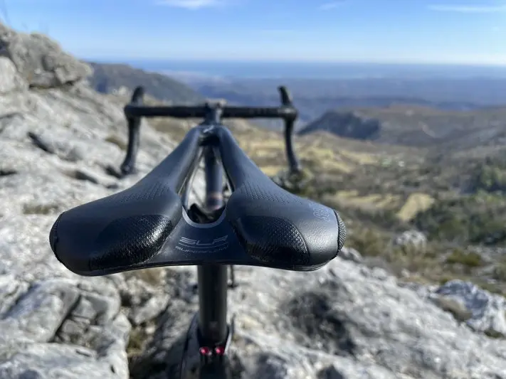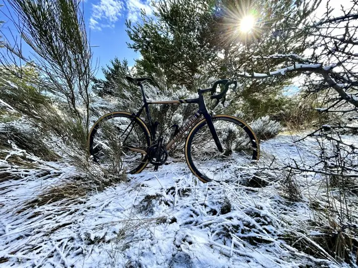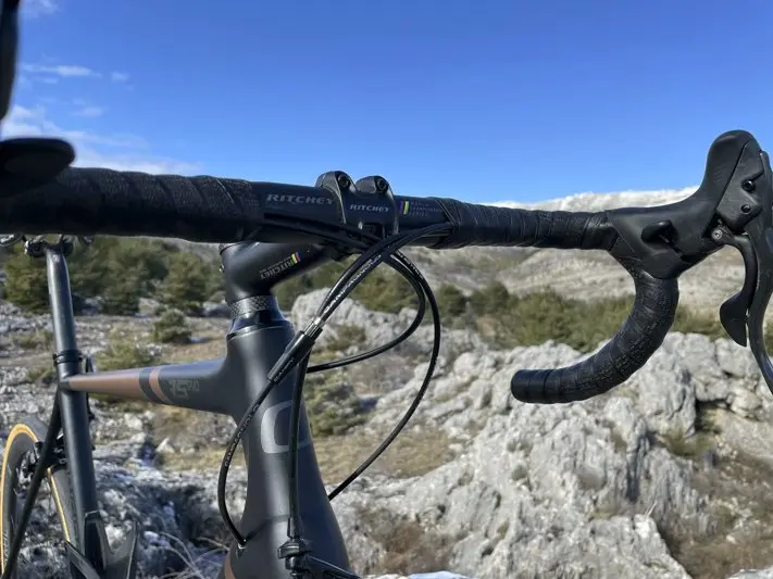 D’autant que le confort est toujours un autre de ses grands points forts. Sur les routes en très mauvais état, pas grand-chose à faire, il faut se montrer patient. Mais sur les rubans légèrement rugueux ou avec quelques passages détériorés, les vibrations se dispersent bien dans l’ensemble du cadre. On ne sent pas de point dur sous la selle, ni sur la fourche avant. L’ingénierie, avec son travail sur l’invisible – pas de multitude des jonctions, pas de résidus – a fait le job pour permettre au cycliste de longues sorties sans souffrir du séant, des avant-bras, de la nuque et résoudre la fatidique équation légèreté, rendement, confort.
