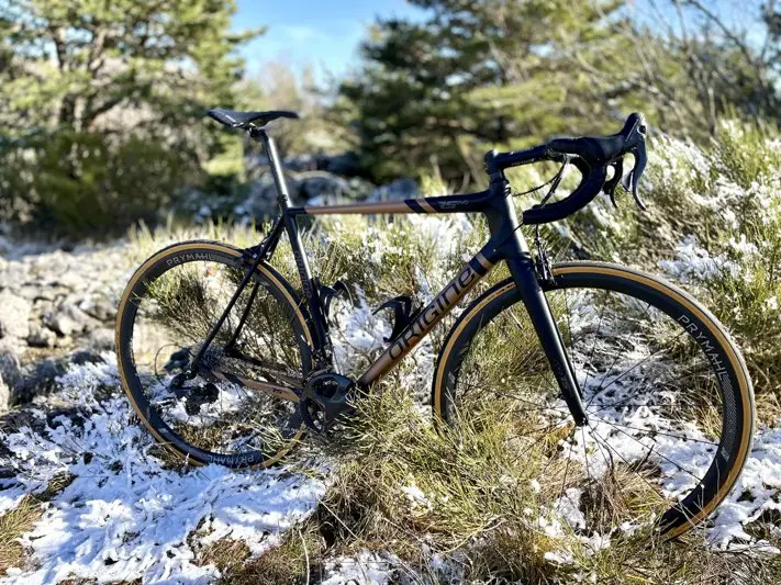 | L’ORIGINE AXXOME RS EVO en bref… Note : ***** LES + : nervosité et légèreté du cadre, confort CADRE : Axxome II RS Evo Carbone – FOURCHE : Axxome II Evo Carbone SSL Direct Mount (320 g)- ROUES : Prymahl Orion C35 – PNEUMATIQUES : Schwalbe Pro One Evo V-Gard TLE, 25 mm – PÉDALIER : Campagnolo Super Record 50-34 – CASSETTE : Campagnolo Super Record 12v 11-32 – DÉRALLEURS : Campagnolo Super Record – FREINS : Campagnolo Super Record – LEVIERS : Campagnolo Super Record – CINTRE : – Ritchey Road Curve WCS – POTENCE : Ritchey 4-Axis – TIGE DE SELLE : Ritchey 1B Superlogic Carbone 27,2 – SELLE : Selle Italia SLR Boost Superflow – NOMBRE DE TAILLES : 6 (XS51,5, S452,5 M54, L55,5, XL57,5 et XXL60) – POIDS : 6,4 kg (sans pédales) – PRIX : 6 000 € (kit cadre à 2 131€). Contact : https://www.origine-cycles.com/fr-FR/ |