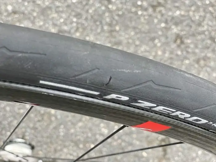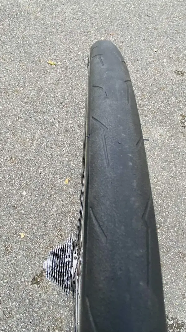 Quelques coupures de silex à signaler sur la bande de roulement mais aucune crevaison à signaler. Je suis depuis repassé sur une autre paire de roues et remettrai les Fulcrum avec les Pirelli au printemps. Ca m’étonnerait que je puisse faire plus de 1000km avec le pneu arrière. Il ne sera sûrement pas flingué mais je préfère remplacer un pneu lorsque le témoin d’usure est lisse pour éviter de devoir affronter des crevaisons à répétition une fois que la bande de roulement s’est affinée.
