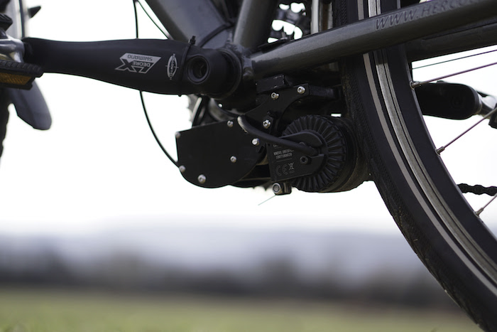 Le bloc moteur pèse seulement 950 grammes et se fixe sous le pédalier. Il peut être complètement débrayé pour continuer à utiliser son vélo Gboost sans assistance, comme un vélo normal, supprimant ainsi la crainte de tomber en panne de batterie. Il est également possible de le garder embrayé pour recharger sa batterie lorsque le cycliste est en descente.