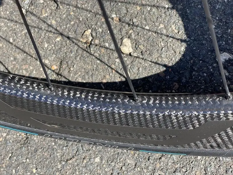 Comme de nombreuses roues avec des jantes aussi hautes, les RAR Magnum 60 magnifient l’esthétisme du vélo, et c’est encore plus vrai ici avec la finition brillante sur la trame de carbone, qui apporte quelques reflets selon l’angle de vue et la lumière.