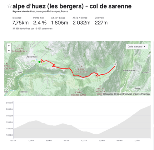 – Après avoir traversé la station de l’Alpe, une première courte remontée vous permettra de reprendre la route de l’altiport puis du col de Sarennes. Pas toujours en bon état, on est ici sur une route pastorale de montagne ! Les deux derniers kilomètres sont toujours compliqués avec l’accumulation des efforts depuis Allemont et l’approche des 2000 m. La pente avoisine les 10 %, et si le vent vient du sud cela peut aussi vous jouer des tours car c’est bien dégagé.