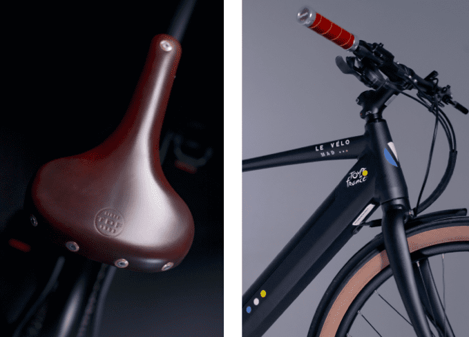 Le Sport + Tour de France – 2490 € Coloris : Noir Mat Poids : 19,5 kg Cadre : Aluminium 2 tailles : 50 et 54 Roues : taille 27,5 pouces Pneus: WTB horizon Jantes : Match1 Dérailleur arrière : Shimano tiagra Cassette: Shimano Tiagra 10 vitesses Manettes: Shimano Tiagra Cintre : Aluminium, Demi-relevé Freins : SHIMANO hydrauliques, type « FLAT MOUNT » Selle : Berthoud brandée Tour de France Poignées : Brooks en cuir Batterie : Lithium-ion rechargeable, intégrée, amovible 36V 12,8Ah, 460Wh communication UART Puissance moteur : 80NM Autonomie moyenne : 80 km Ecran : LCD Mini avec 4 niveaux d’assistance Garde-boues : alu tubulaire En vente sur https://levelomad.com |