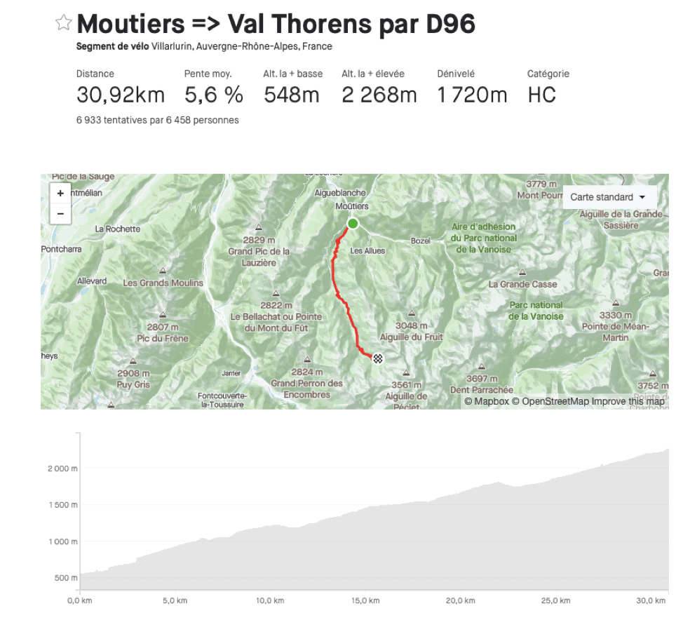 Nous arriverons à Moutier, le parcours de 400 km ira chercher Meribel et le col de la Loze, redescente sur Courchervel pour revenir à Moutier, au pied de l’ultime et interminable montée de Val Thorens, avec 31 km pour 1720 m de dénivelé… Soit quasiment l’équivalent d’un Galibier depuis Saint-Michel-de-Maurienne. Bon, autant dire que l’arrivée ne devrait pas se faire au sprint.