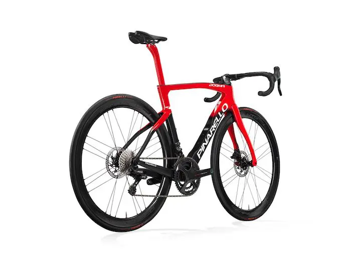 Dès les premières étapes de la conception, chaque détail du Dogma F a été conçu de manière organique, pour préserver les caractéristiques spécifiques du cadre quelle que soit sa taille. Pinarello ne se contente pas d’allonger ou de raccourcir les tubes, la marque modifie les angles et révise des sections entières, avec un objectif en tête : faire en sorte que tout le monde expérimente les mêmes qualités de performance uniques du Dogma F.