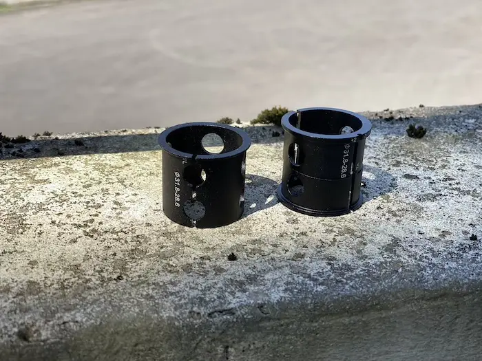Grâce à un système de bagues entre le serrage de potence et le pivot de fourche, le PRO Vibe Evo peut être positionné avec un angle de +/- 2°, de manière à affiner la position en hauteur et surtout compenser légèrement les seules trois longueurs disponibles pour l’instant (105, 115 et 125 mm, associées à des largeurs de 38, 40 et 42 cm).