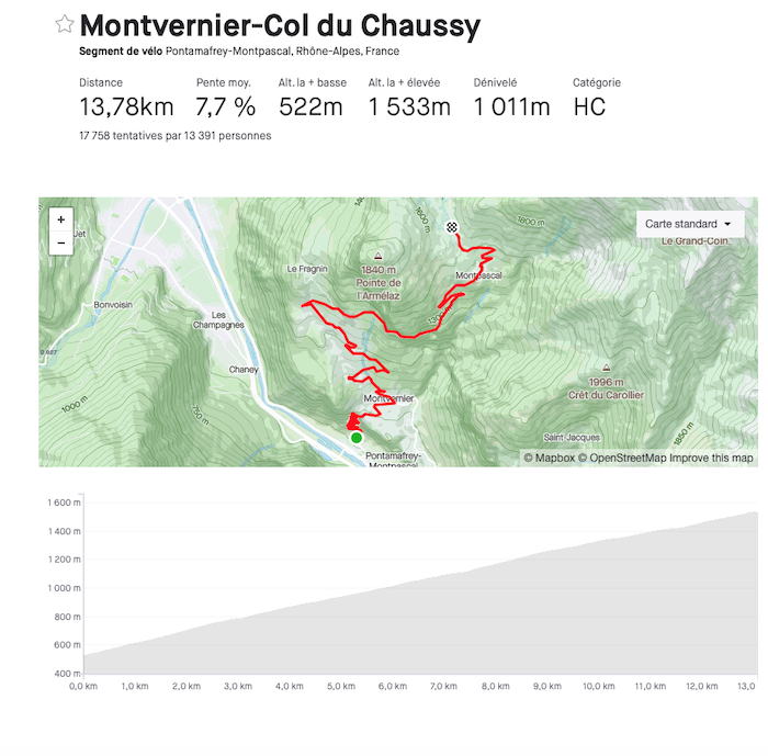 On peut décomposer le Chaussy en deux parties. Une première avec les lacets de Montvernier, rendus célèbres par le Tour de France, ça zigzag non stop pendant trois km, avec 18 lacets.