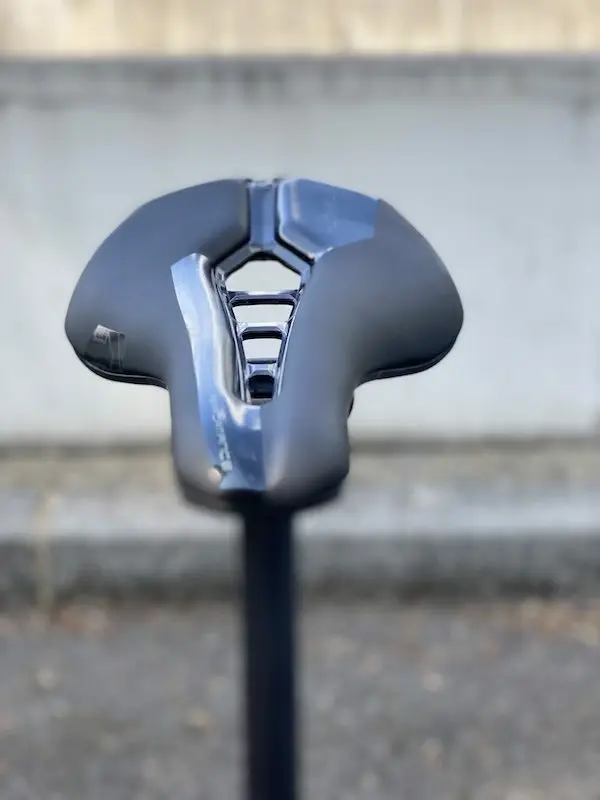 Ce qui ressort de l’essai est avant tout une sorte de « transparence » sous le séant, dans le sens où la selle ne se sent pas ! Bien que légère et avec une coque rigide qui ne procure pas d’effet de pompage sous l’effort, nous avons toujours eu l’impression d’être assis sur quelque chose de très moelleux, sans point dur ou de pression, et sans ressentir le moindre échauffement. La mousse offre suffisamment de souplesse pour épouser l’anatomie, mais elle est ferme juste ce qu’il faut pour ne pas se déformer après de longues heures sur le vélo. Son épaisseur est d’ailleurs étudiée pour qu’on ne rencontre pas de gêne ou d’inconfort près de la zone du canal central.